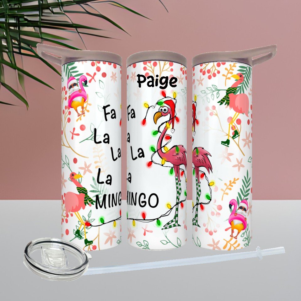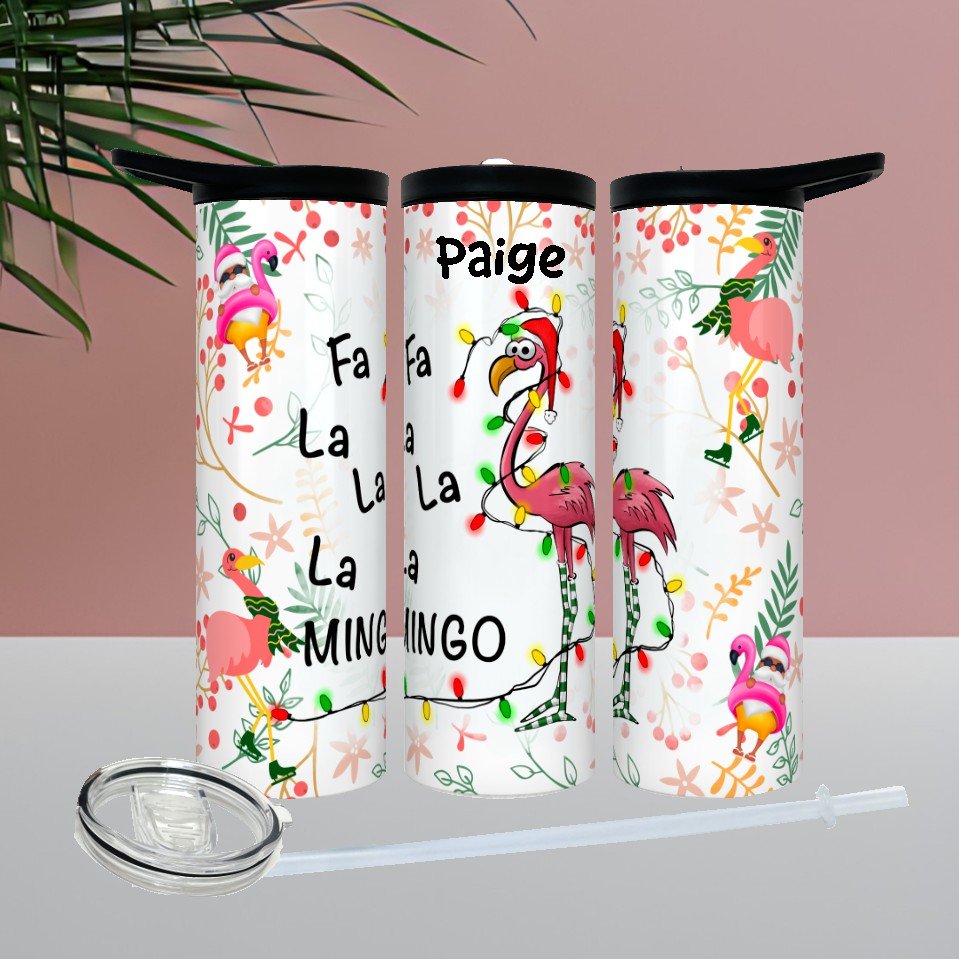Bring tropical cheer to your holiday season with this adorable “Fa La La La Mingo” Christmas Flamingo tumbler! Featuring bright, playful flamingos wrapped in colorful Christmas lights, festive greenery, snowflakes, and cheerful holiday accents, this tumbler adds a fun, sunny twist to classic Christmas style. Makes a perfect holiday gift for friends, coworkers, teachers, or anyone who loves flamingos and festive fun.