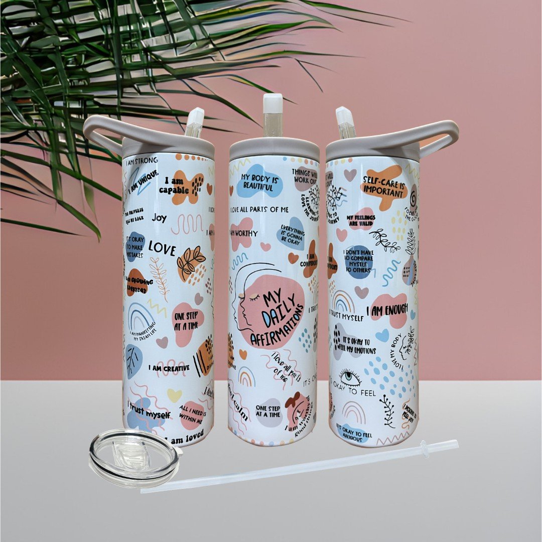 Start your day with positivity and inspiration with our Daily Affirmation Tumbler. Designed with uplifting words and motivational phrases – a great reminder to stay confident, grounded, and focused throughout your day.