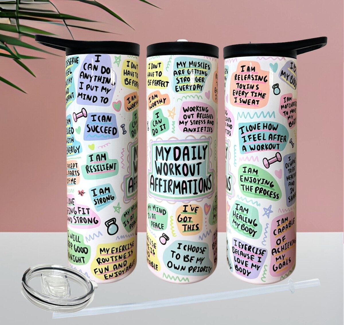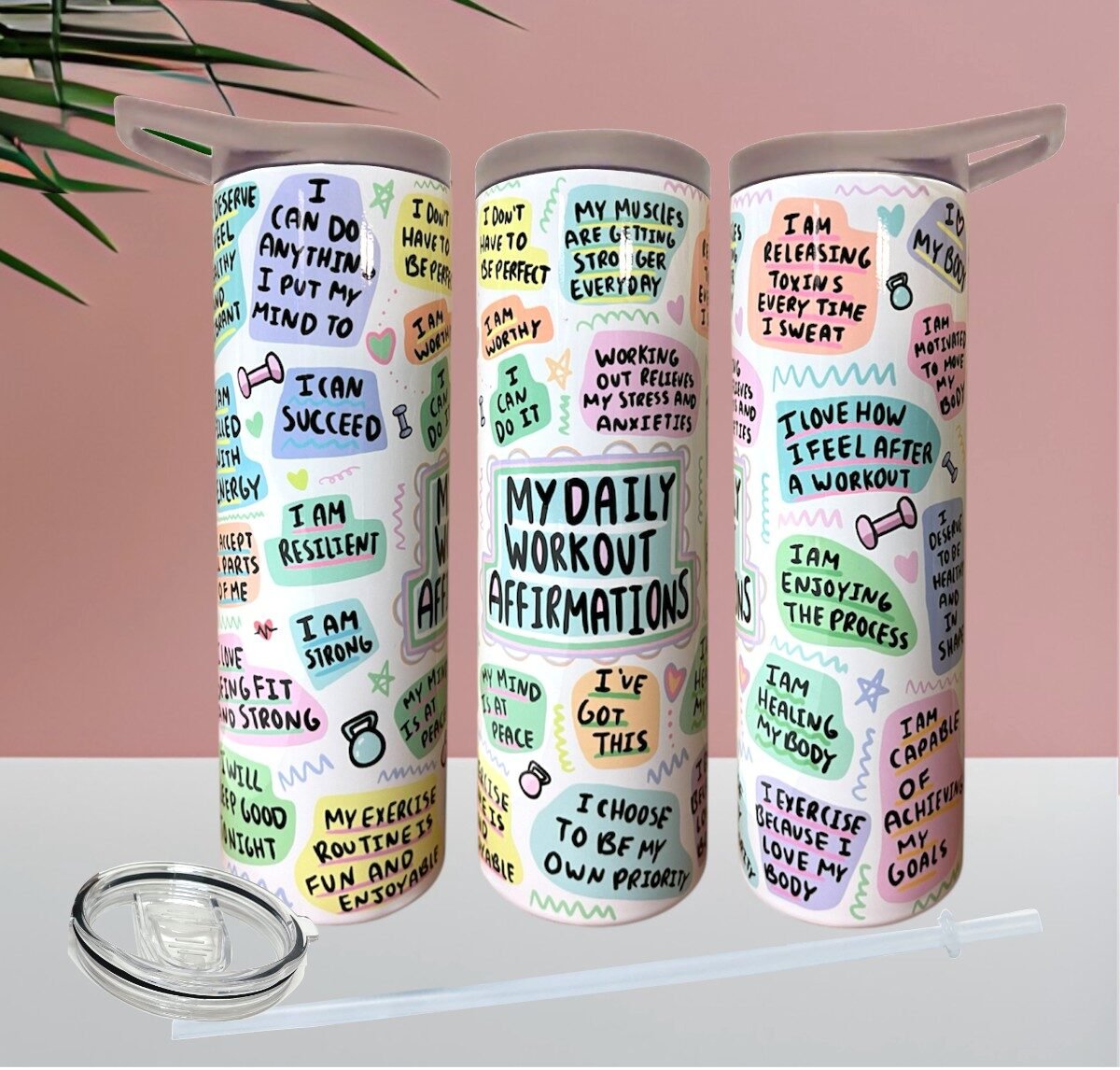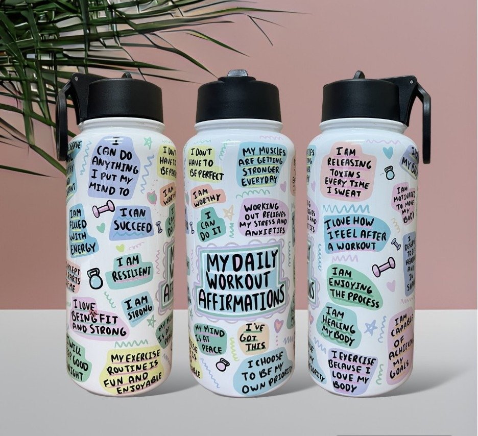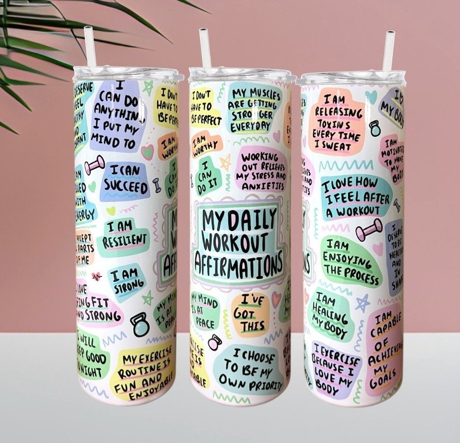 Fuel your workouts with motivation and positivity! Our “My Daily Workout Affirmations” Tumbler is designed to keep your energy high and your mindset strong—one sip at a time. Featuring empowering affirmations that remind you of your strength, discipline, and determination, this tumbler is your perfect gym companion and daily motivator.