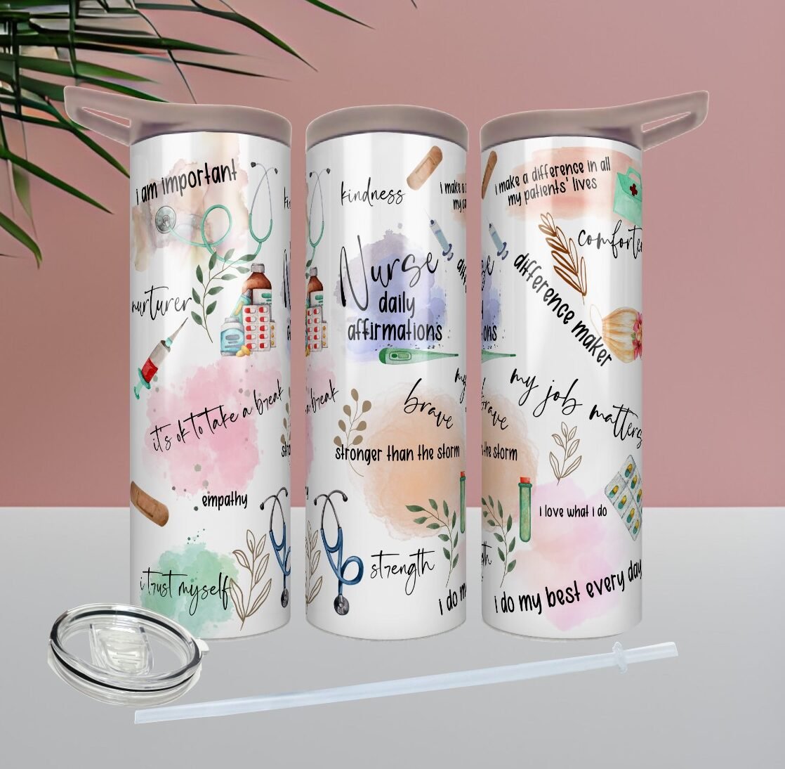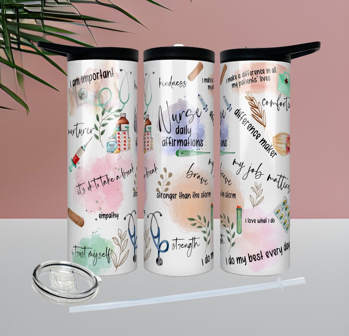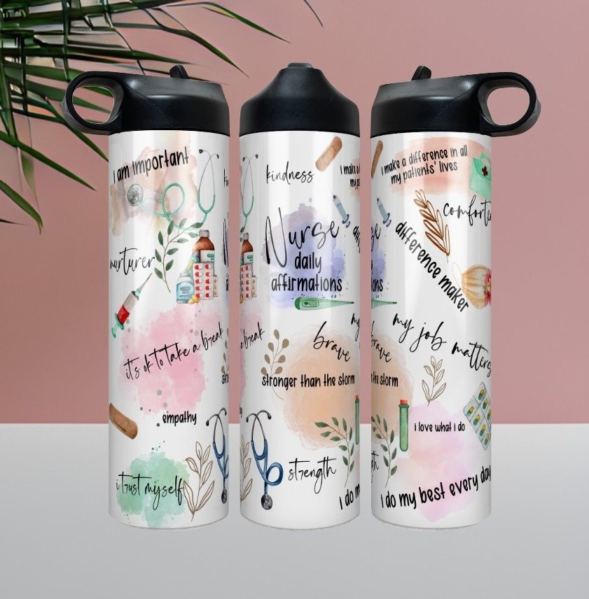 Celebrate the heart, dedication, and strength that define every nurse with our “Nurse Daily Affirmations” tumbler. Designed with uplifting motivational words, this tumbler serves as a daily reminder of courage, compassion, and purpose — because nurses pour so much into others, and they deserve to refill their own cup, too.